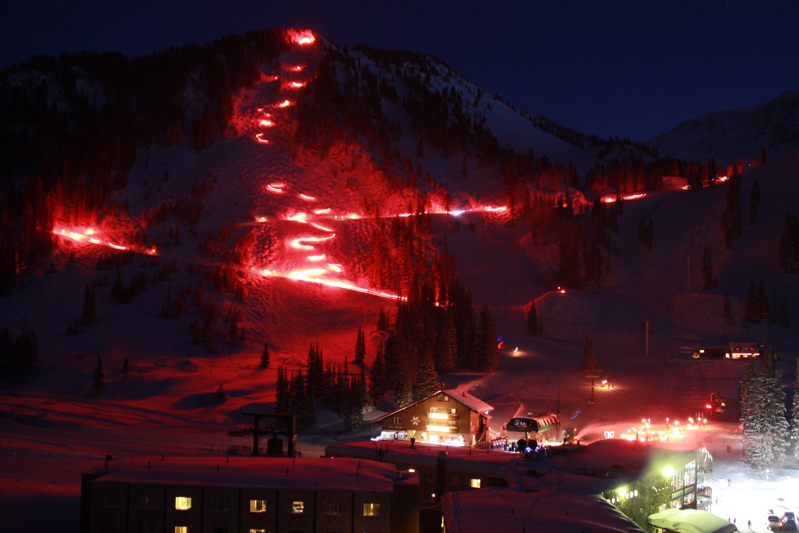 Here's the premise: you go up to the Alta ski area at night in the freezing cold, wait in line to take a lift up, wait in line to get a torch or flare, and then ski down a cat track. I can't believe this isn't on everybody's New Year's must-do list!!!
